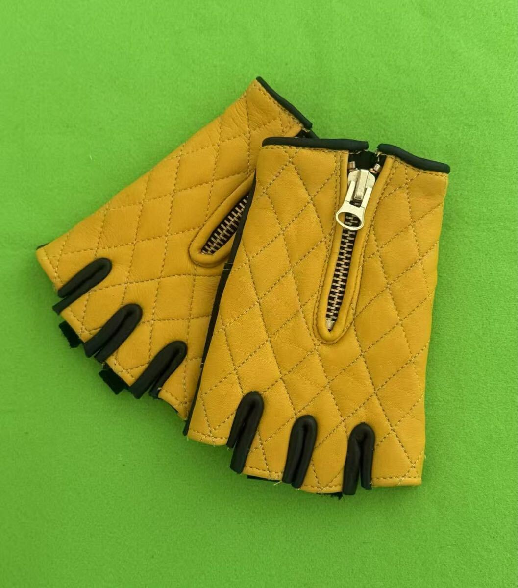 - 本革グローブ ハーレーバイクグローブ 半指レーザーグローブショート通気 春夏用
