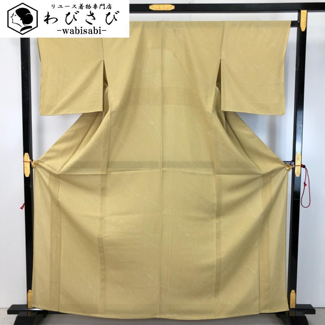 - 夏着物 小紋 絽 梅雨芝模様 玉子鼠色 三越お誂え K-5050 着物 きもの kimono 和服 和装 中古 リサイクル着物 【送料無料】
