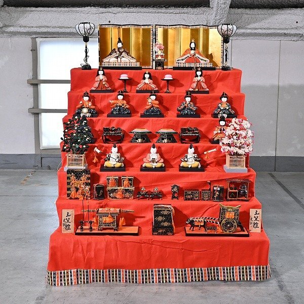 - 工芸 御ひな段 雛人形 7段 45号 まつり スチールフレーム 飾り 桃の節句 3月3日 上巳 木箱収納付き 一式 豪華絢爛 春 和室 行事