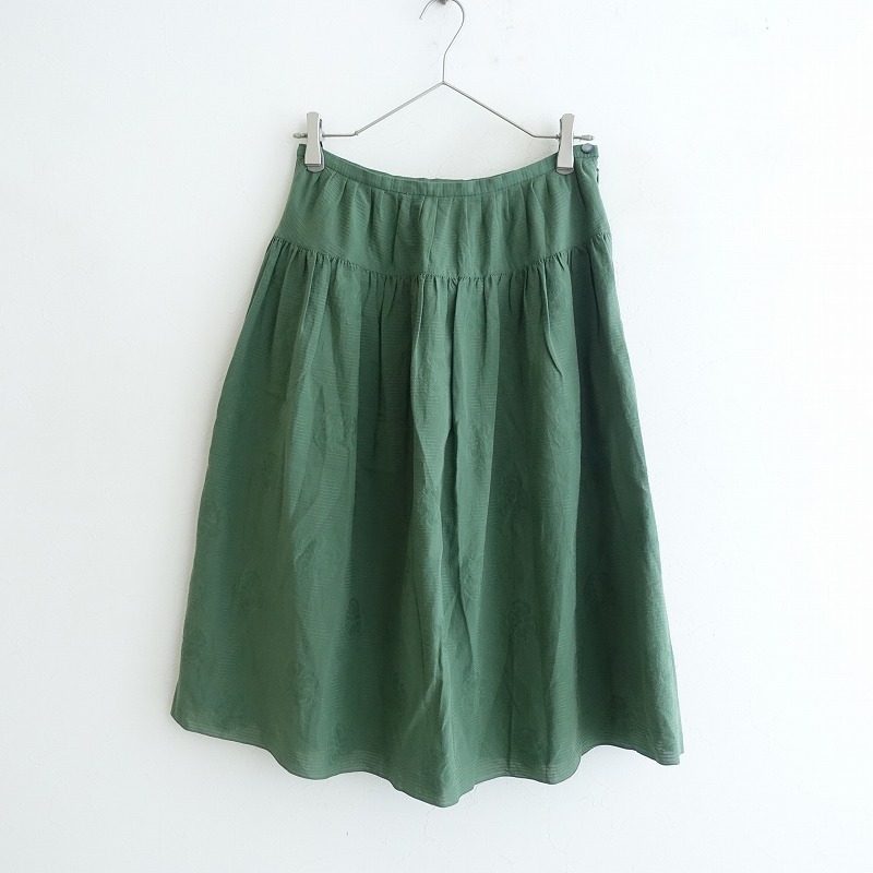 - サリースコット Sally Scott *カットジャカード切替えギャザースカート*11グリーン無地裏地付き綿柄織り(sk2-2506-293)【90G52】