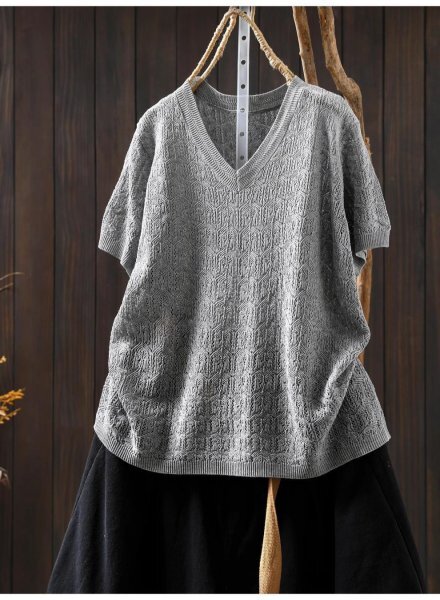 > 25zy Vネック ラフ 麻タッチニット チュニック トップス ナチュラル 麻混 ゆったり オシャレ サラサラ まわしやすいシンプルなデザイン1
