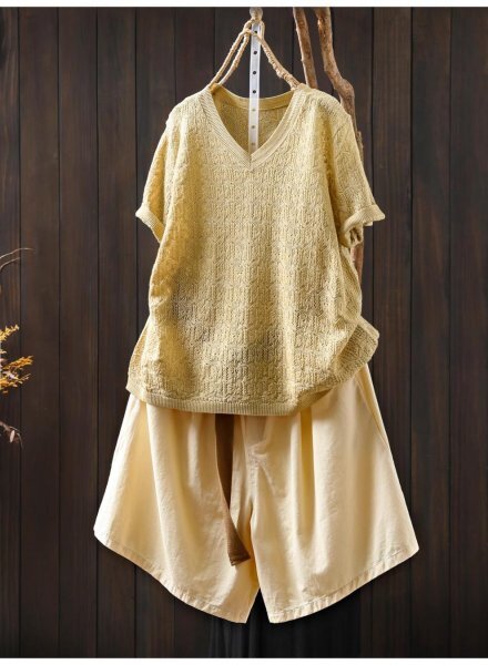 > 25zy Vネック ラフ 麻タッチニット チュニック トップス ナチュラル 麻混 ゆったり オシャレ サラサラ まわしやすいシンプルなデザイン4