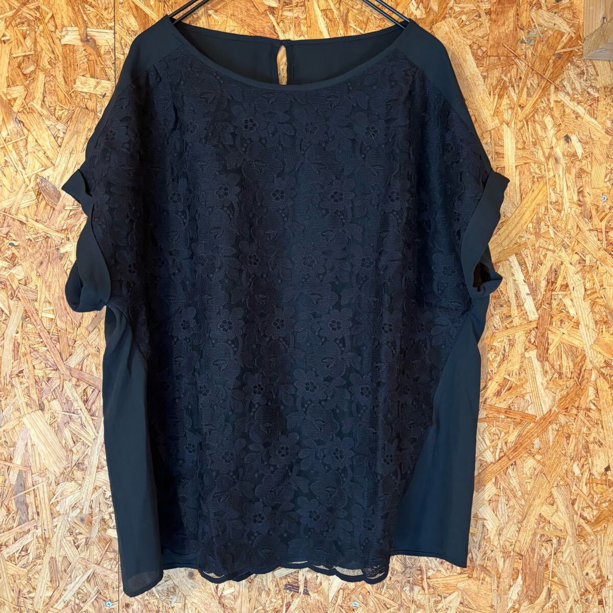 > 美品 As Know As カットソー 生地切替 ブラック 半袖カットソー レディース トップス レース 4698