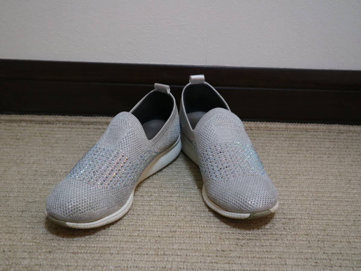 - 【即決】3回程使用 美品 日本製 A&C ◆定形外可 軽量 ビジュー ストレッチ フラット シューズ スリッポン シルバーグレー 23 EEE
