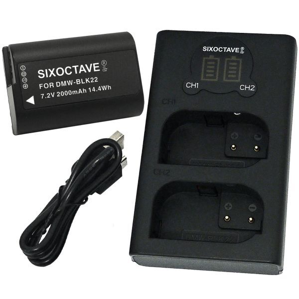 送料無料 DMW-BLK22 パナソニック 互換バッテリー 1個と 互換充電器 1個(2個同時充電可能 / USB充電式)DC-S5M2X / DC-GH5拍卖
