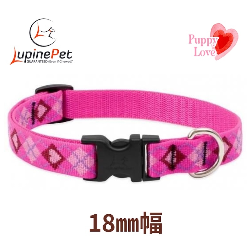 - ワンタッチ首輪・Sサイズ・18mm幅 パピーラブ柄 23-35cm LUPINEルパイン アメリカ製 軽量 丈夫 小型犬中型犬