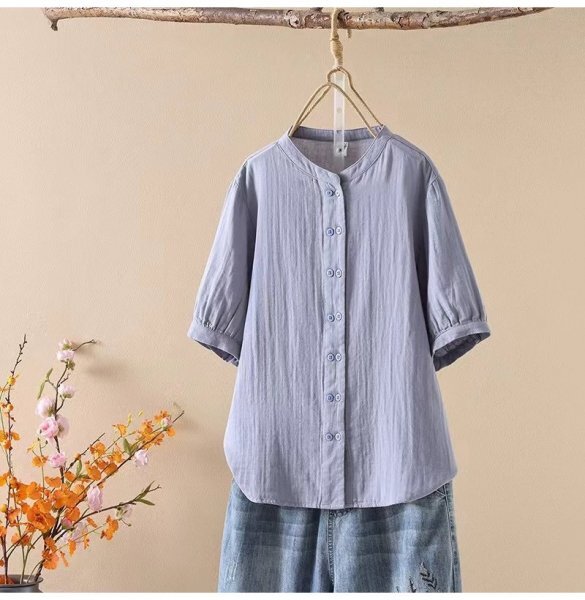 - 25 zy 半袖 チュニック トップス ダブルガーゼ 綿100% コットン サラサラ 通気性肌触り抜群 ゆったり 水色系
