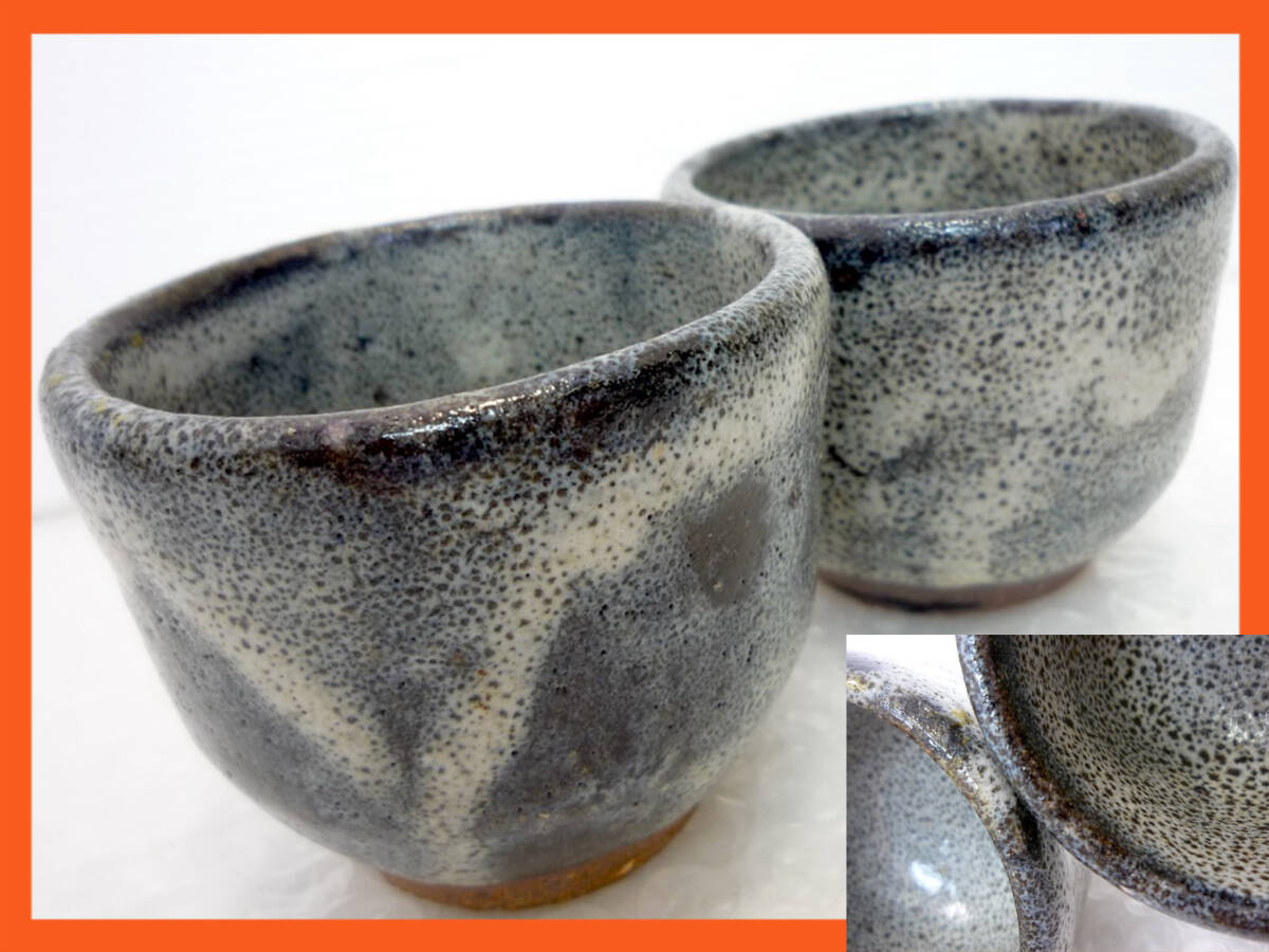 - 旧家蔵出 激レア 斑唐津 古唐津 皮鯨 皮くじら 湯呑み 湯飲 ぐい呑 2個セット 茶碗 優作 端正 秀逸 重厚 風情 茶道具 趣 逸品 骨董品 希少C