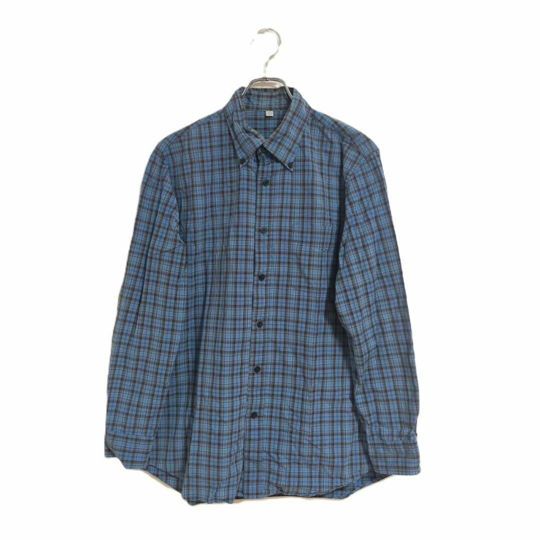 - ユニクロ チェック柄 コットン 長袖シャツ ブルー L カジュアル きれいめ