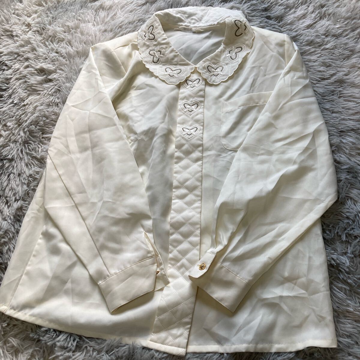 - aye aye ハートキルティング風デザインスカラ襟シャツオフ白肩パッド入りM美品47