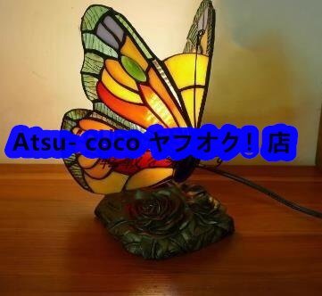 > ◆稀少品◆芸術品◆ステンドランプ テーブルスタンド 蝶 照明 ティファニー技法 レトロな雰囲気 ステンドグラス 室内装飾