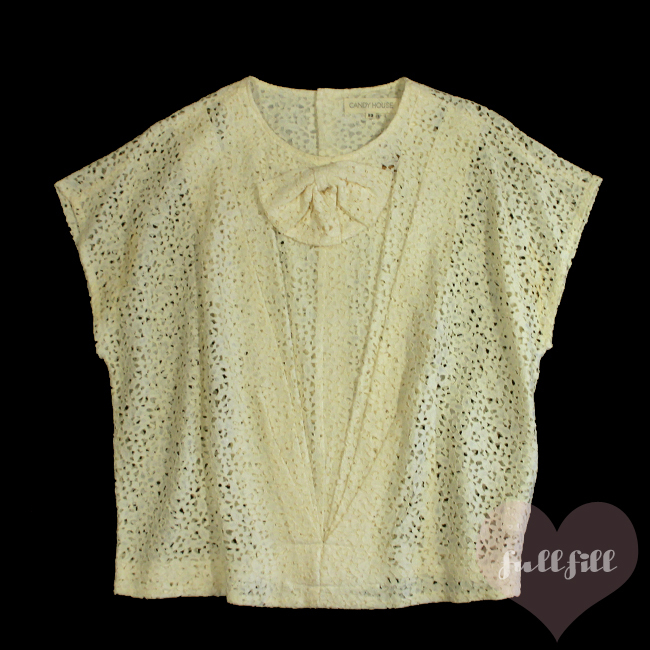 - ブラウス 古着 総レース バクボタン リボン付き 昭和レトロ フレンチスリーブ ビンテージ ヴィンテージ vintage トップス レディース古着