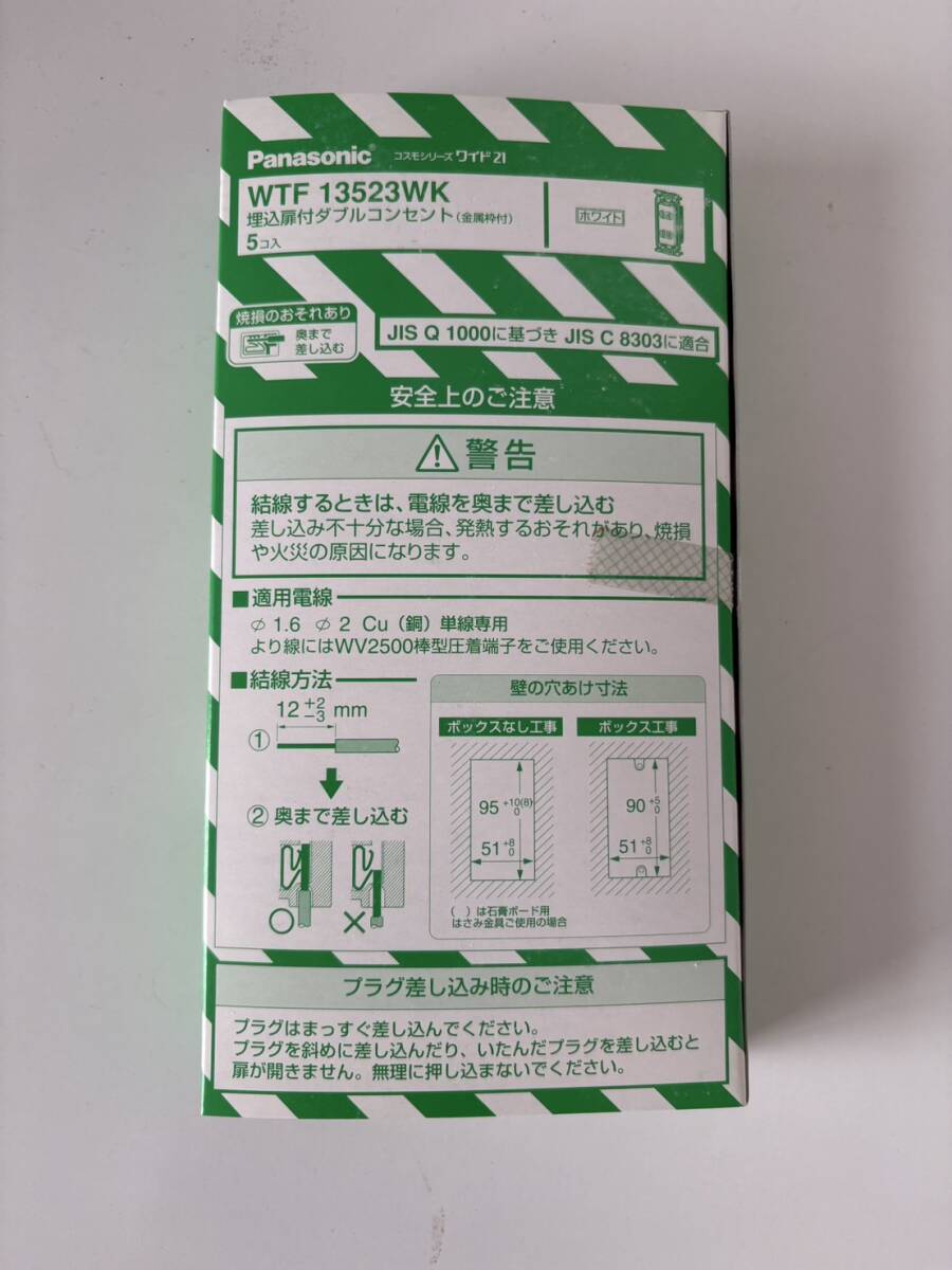 - 2【Panasonic】パナソニック WTF13523WK 埋込扉付ダブルコンセント ※5個1セット※ 金属枠付 ホワイト コスモシリーズ 配電用品 電工 電材