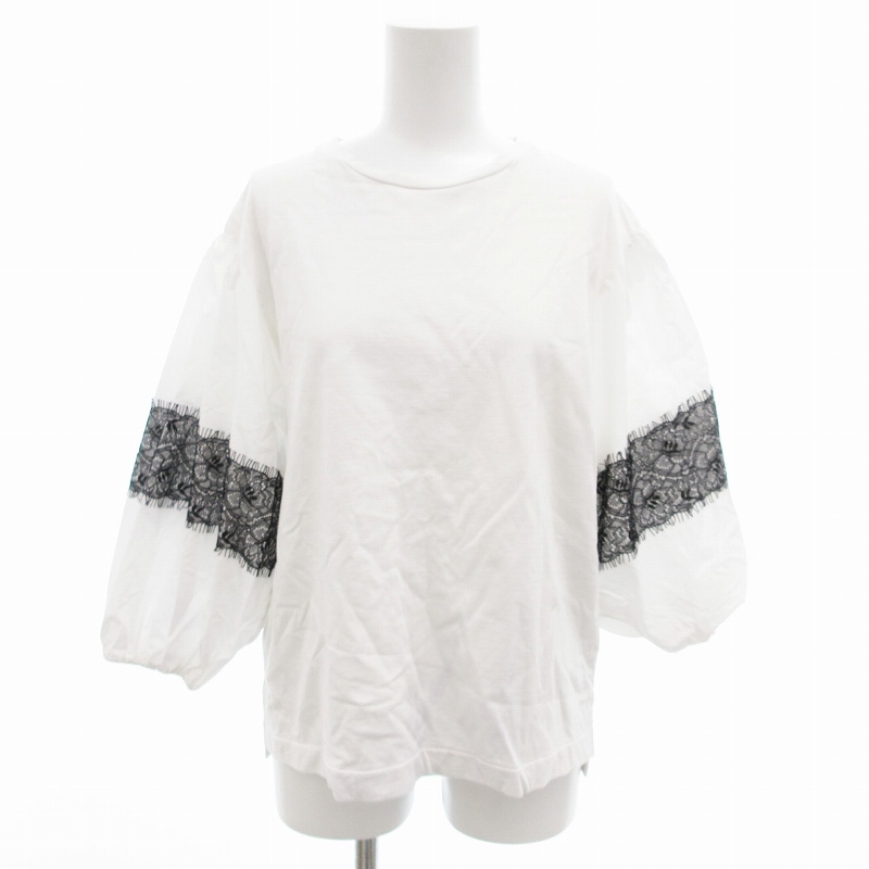 > ポールスミス PAUL SMITH ウィメンズ レースコンビ カットソー ブラウス 半袖 切替 M 白 ホワイト /OU レディース