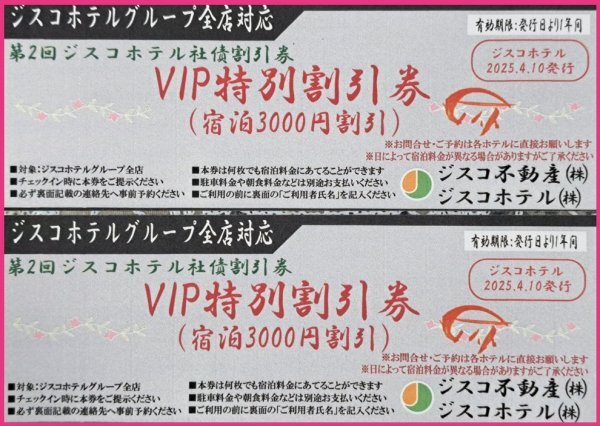 - 【宿泊 割引券:6000割引き=3000円x2枚】★京都・長崎・諫早・大村・雲仙・島原・西海★ホテル VIP宿泊券★ジスコホテル