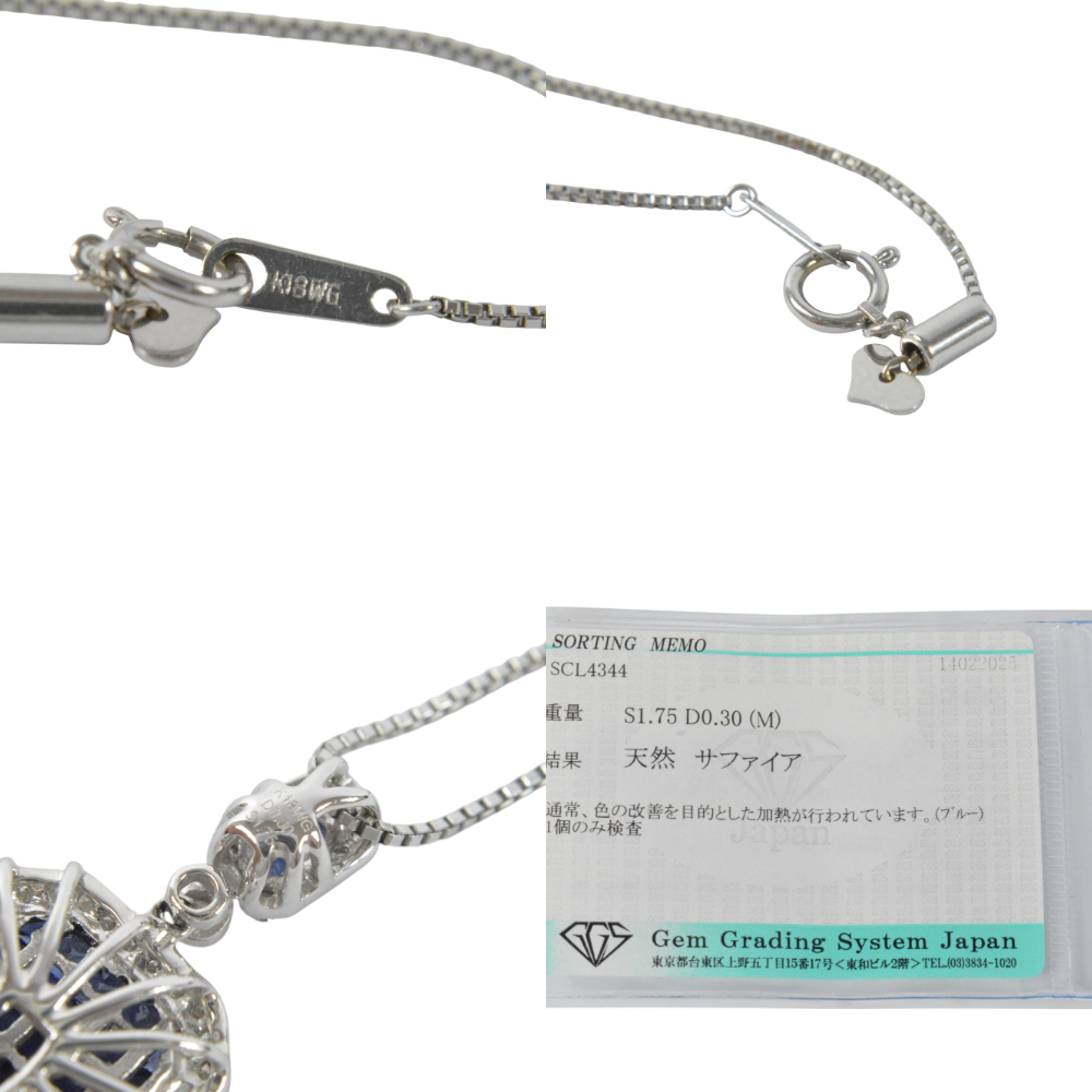 - ブルー サファイヤ ダイヤモンド ネックレス メンズ ジュエリー 大人ラグジュアリー K18WG S1.75ct D0.3ct 6.7g