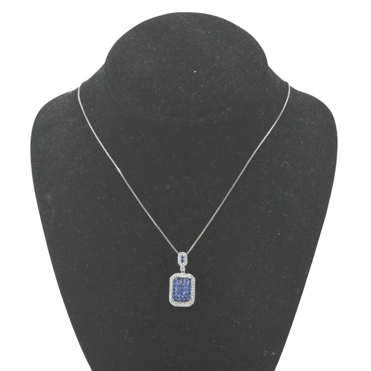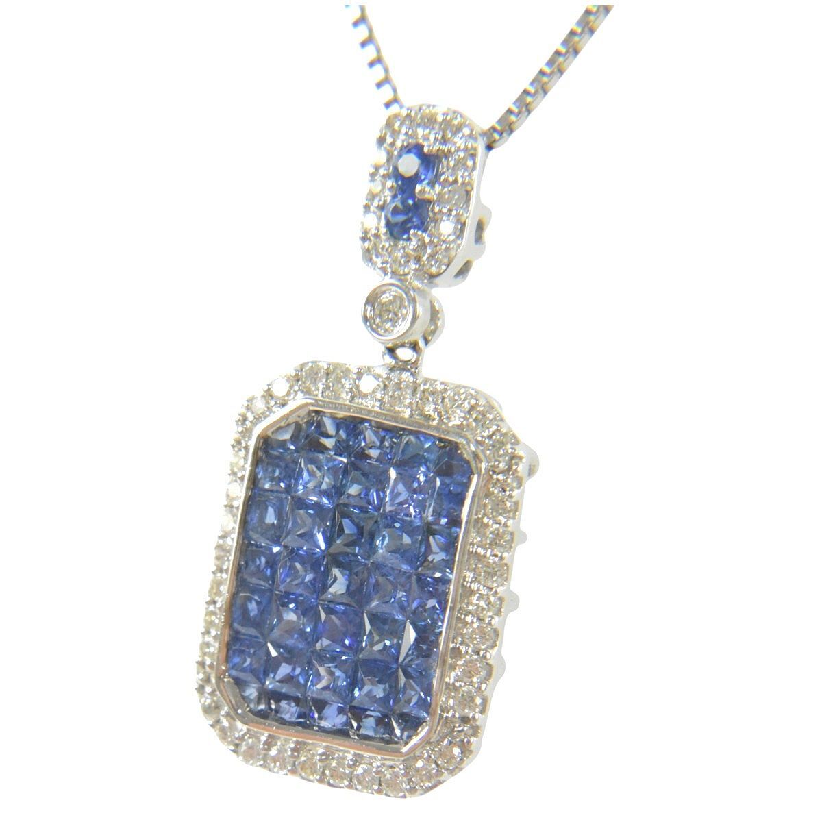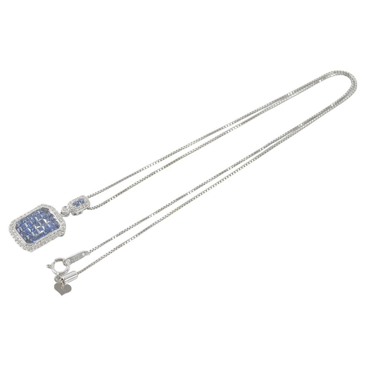 > ブルー サファイヤ ダイヤモンド ネックレス メンズ ジュエリー 大人ラグジュアリー K18WG S1.75ct D0.3ct 6.7g
