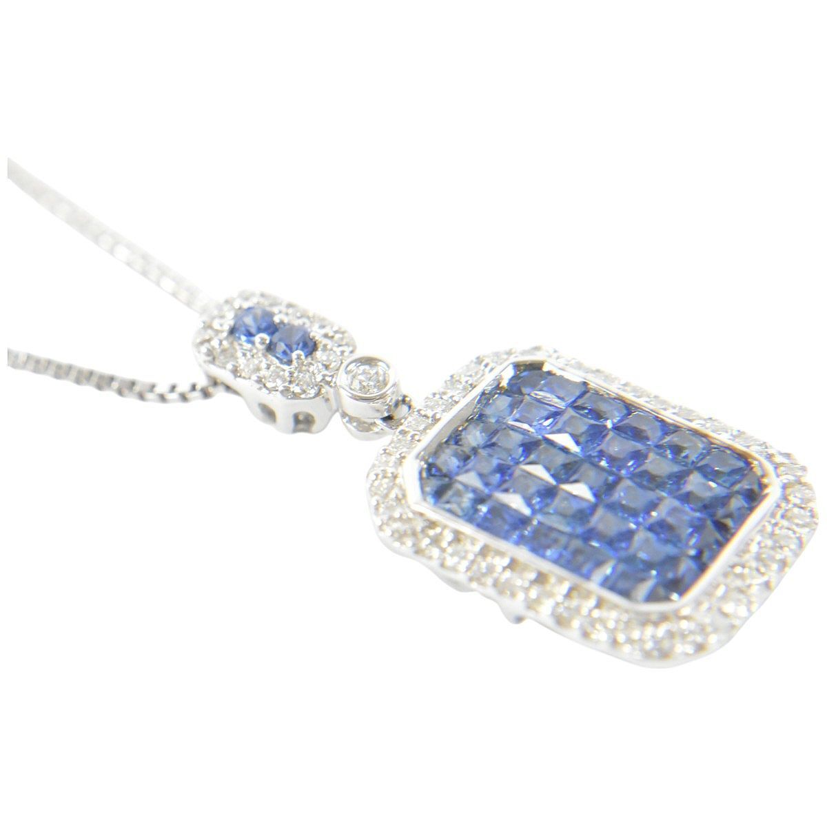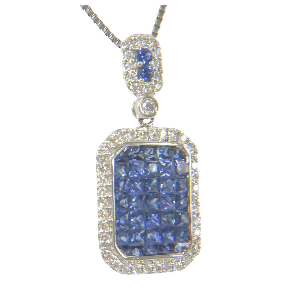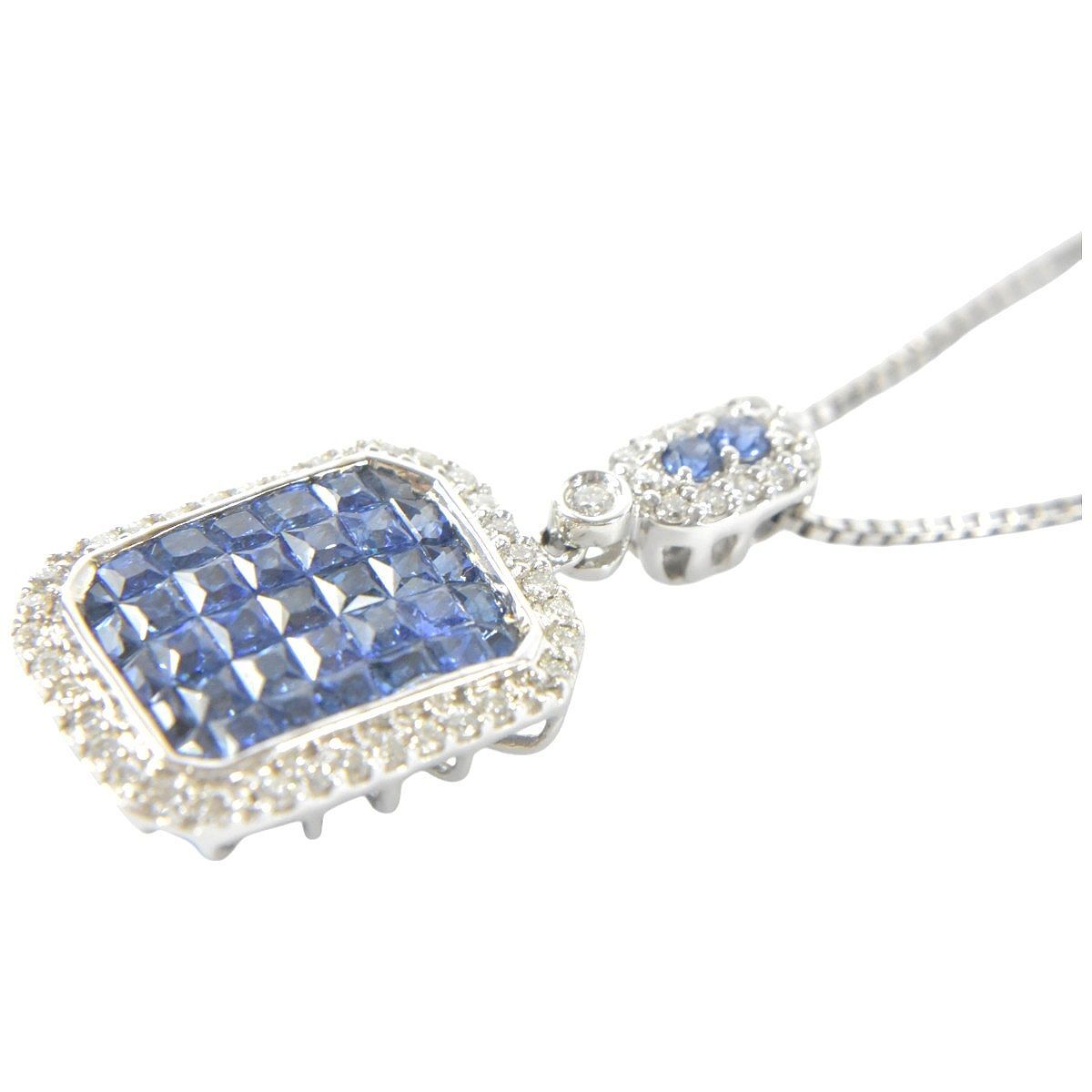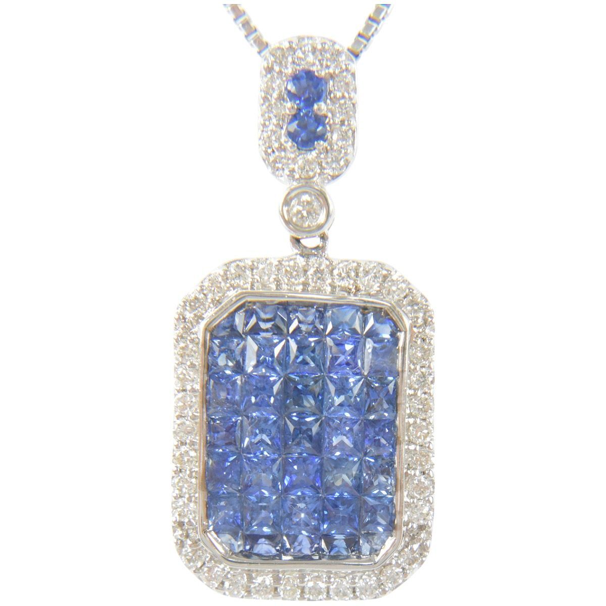 > ブルー サファイヤ ダイヤモンド ネックレス メンズ ジュエリー 大人ラグジュアリー K18WG S1.75ct D0.3ct 6.7g