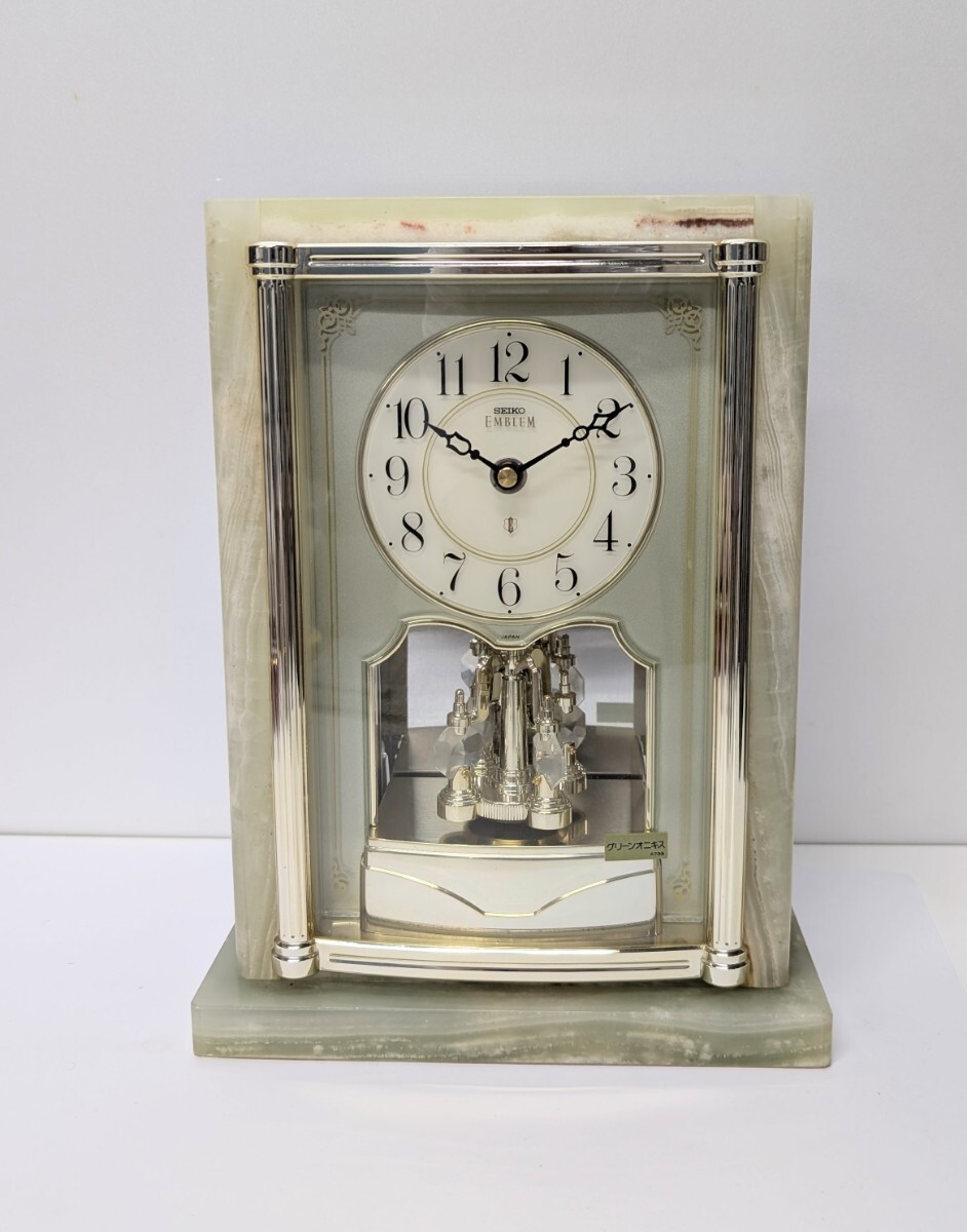 - ■ジャンク品■ SEIKO EMBLEM/セイコー エンブレム 置時計 グリーンオニキス枠 回転飾り