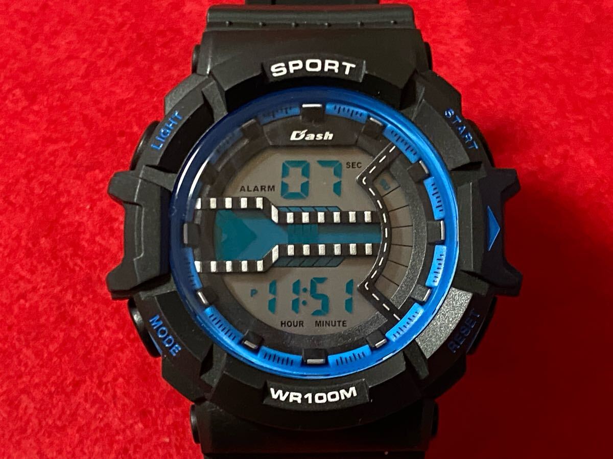 - 腕時計 デジタル Dash スポーツ 防水 多機能 バックライト付ブルー 動作品