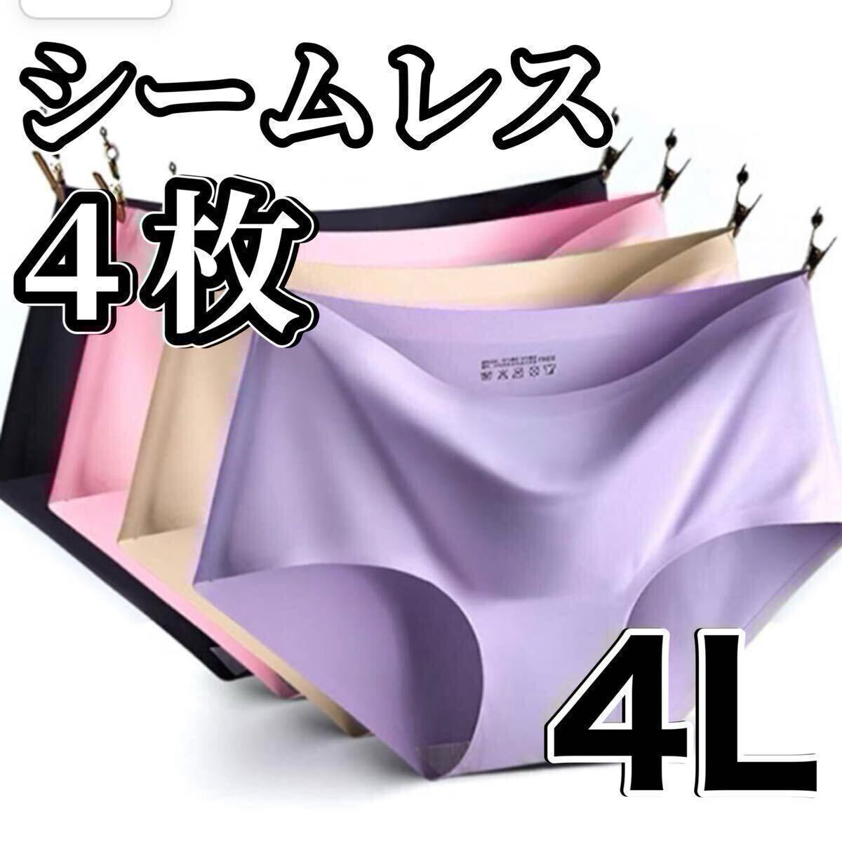 - シームレス ショーツ 4枚セット 4Lサイズ レディース コットン 綿 XXXL パンツ ブラック 黒 パープル 紫 ベージュ 肌色 ピンク 下着