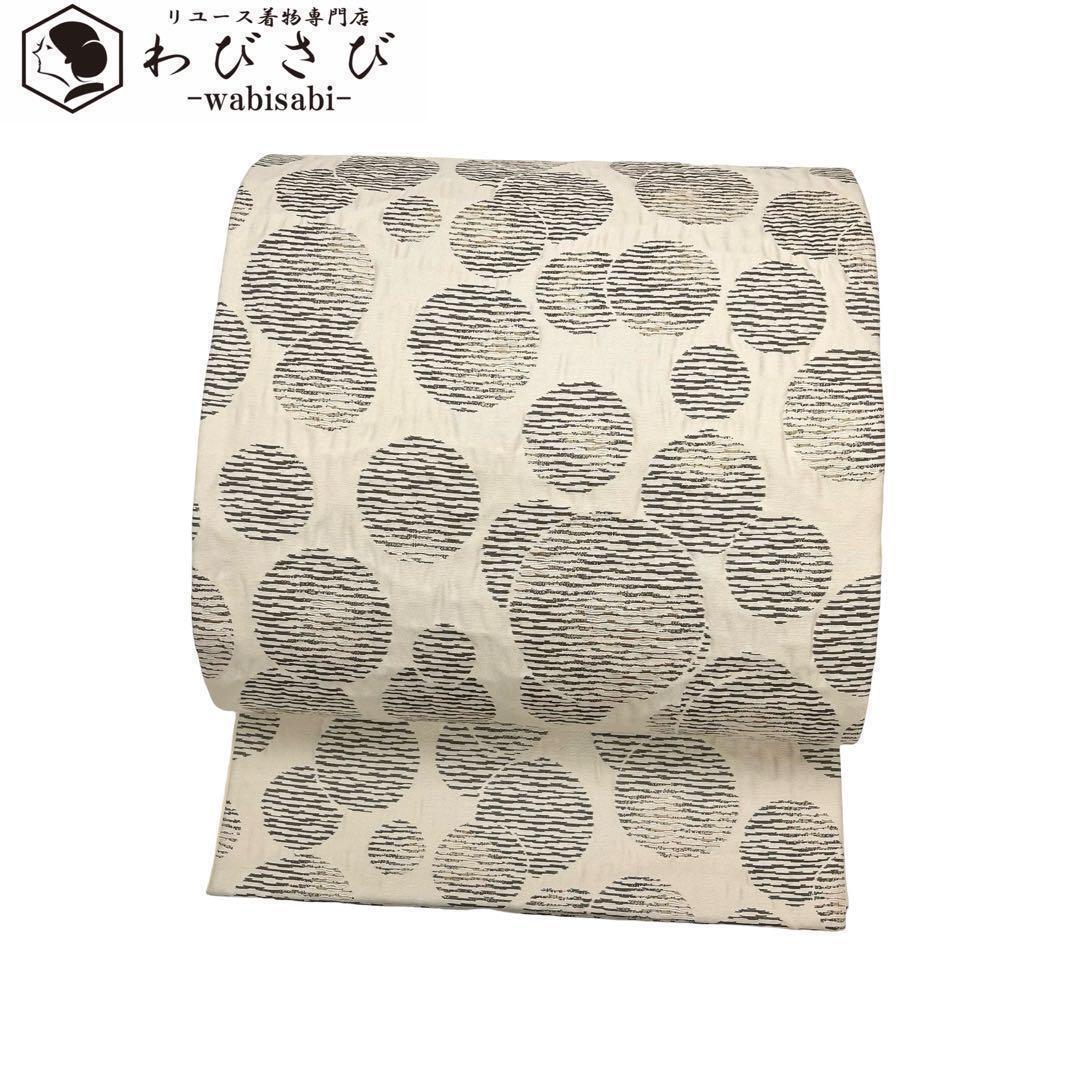 - 袋帯 紅花染 横縞水玉模様 薄生成色 O-3722 着物 きもの kimono 和服 和装 中古 リサイクル着物 【送料無料】