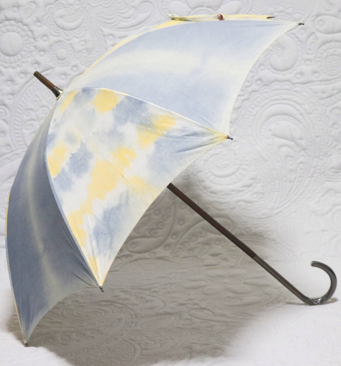 - 新品タグ付き【晴雨兼用 長傘】1点物!弁柄(ベンガラ)染 木製 雨傘 日傘 日本製 和洋兼用 v7315
