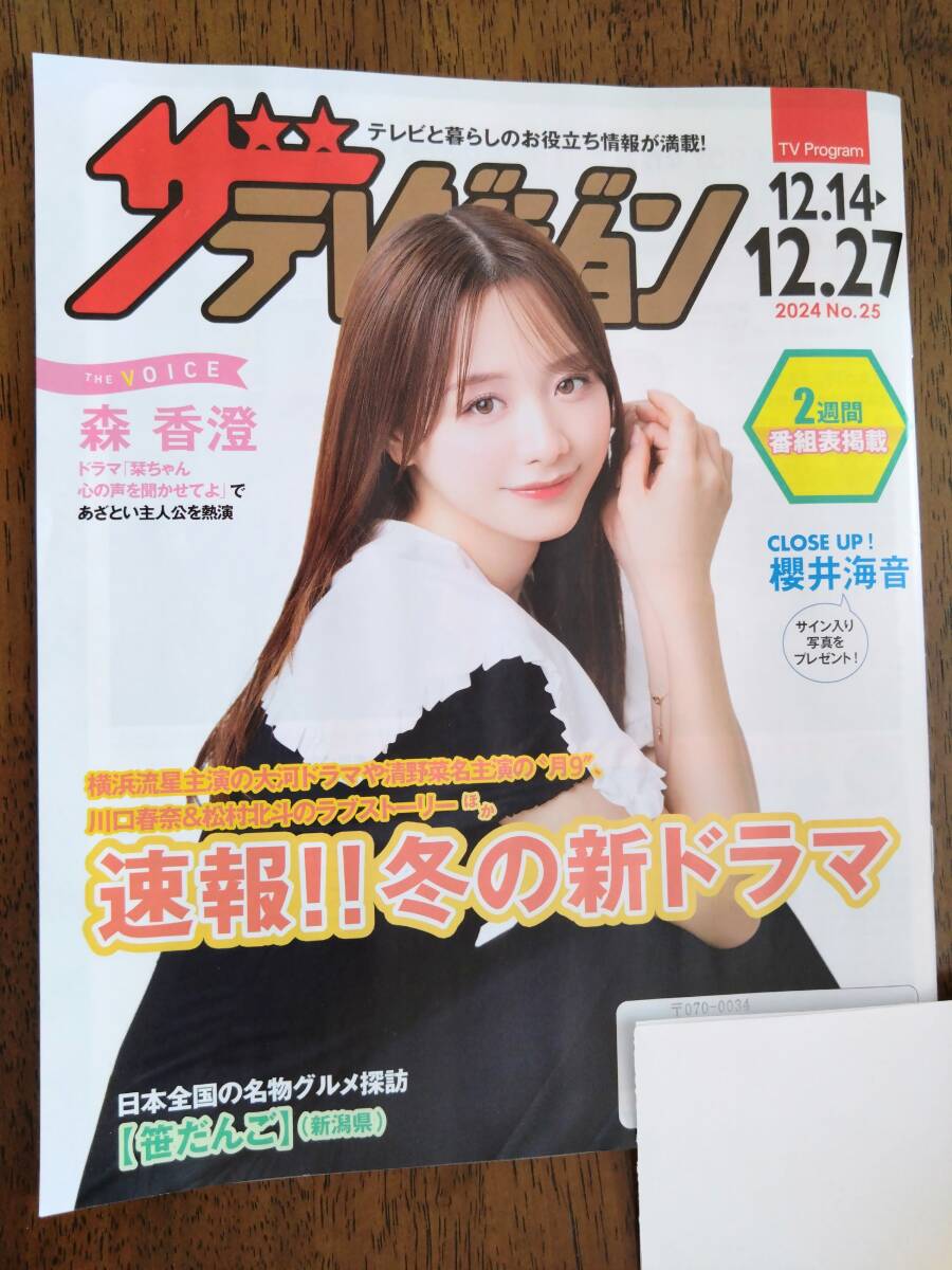 - ◎[ザ・テレビジョン 2024.12/14-12/27 日本生命]非売品 森香澄/櫻井海音/冬の新ドラマ/橋本環奈/吉高由里子
