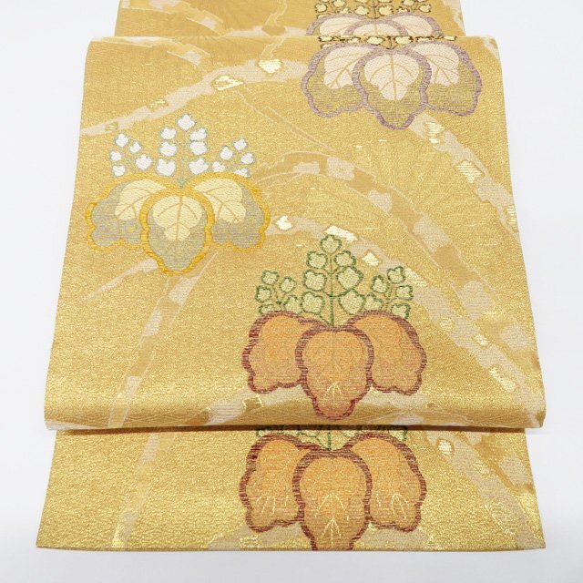 - 袋帯 未使用 正絹 フォーマル 仕立て上がり 六通 桐文 菊 箔糸 きもの北條 A1235-1