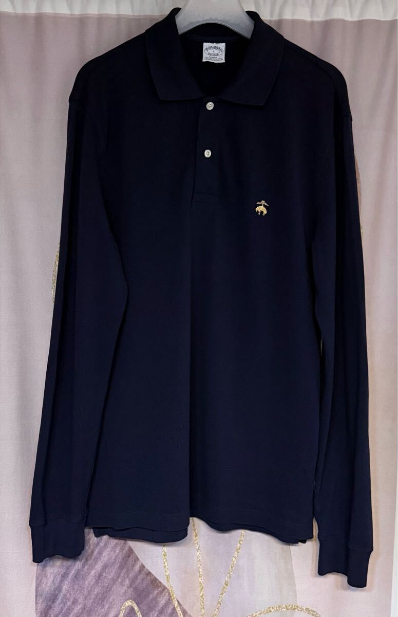 - ブルックスブラザーズ スーピマコットン GF 金刺繍 長袖 ポロシャツ ネイビー