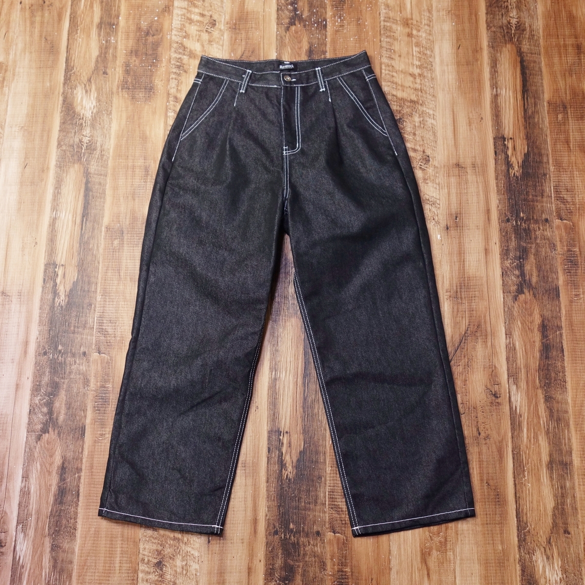 - 美品 Re:stock fashion タックワイドデニムパンツ ユニセックス ストレート ジーンズ Sサイズ ブラック LZ12