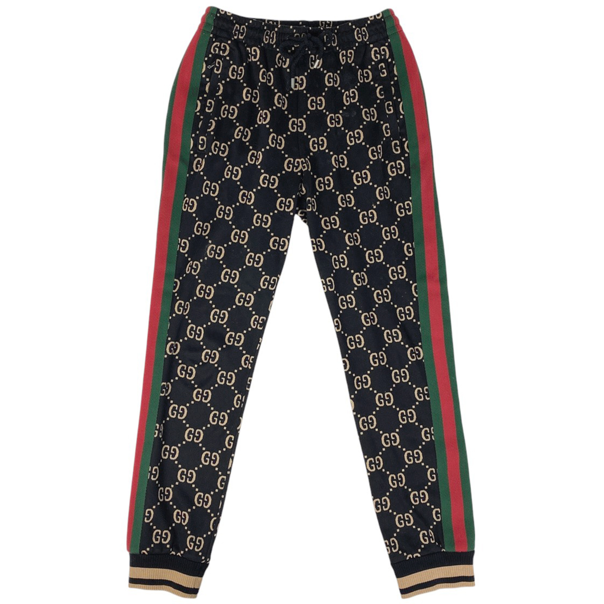 > 【在庫一掃】 グッチ GG柄 スウェットパンツ シェリーライン ウェブ ボトムス パンツ コットン ブラック レッド グリーン 【中古】