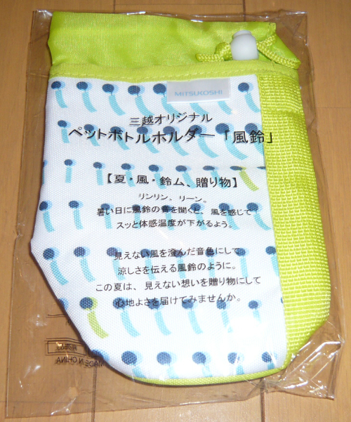 > 非売品◆三越 MITSUKOSHI◆ペットボトルホルダー・ケース☆「夏・風・鈴ム」☆涼しげな風鈴☆黄緑&白地+ブルー【新品・未開封】オリジナル