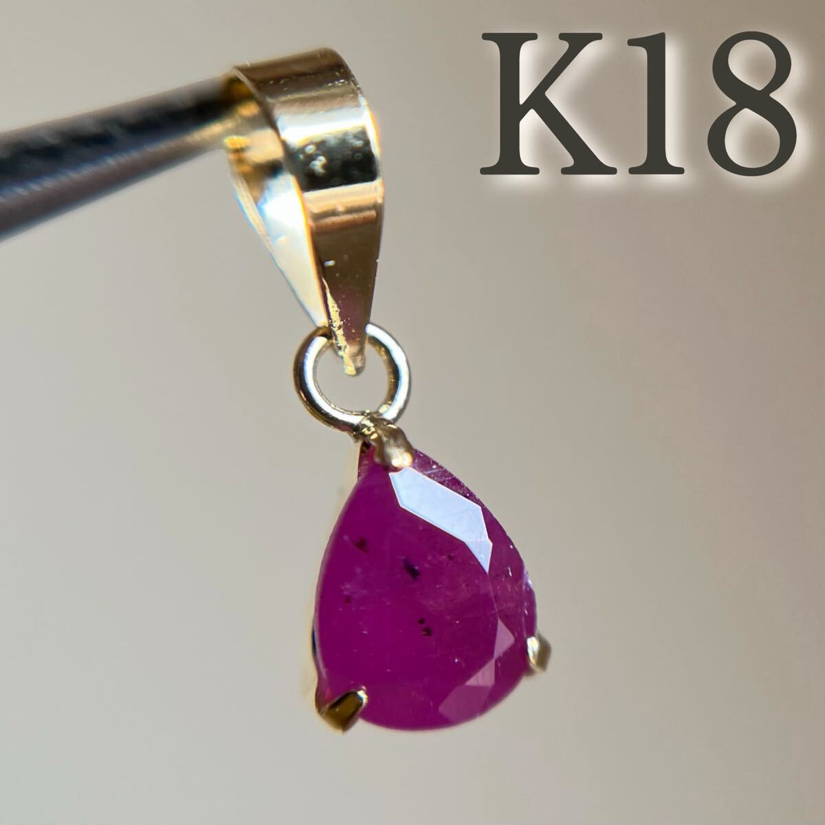 - K18 天然石ルビー ペンダントトップ チャーム pear 18金イエローゴールド カラーストーン ruby
