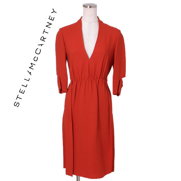 > 【定価99,000円 新品タグ付】STELLA McCARTNEY Vネックワンピース size36 オレンジ系 ステラマッカートニー
