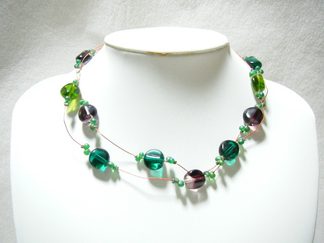 - ★2連 ネックレス ガラス 緑系 グリーン系 紫系【AS26】