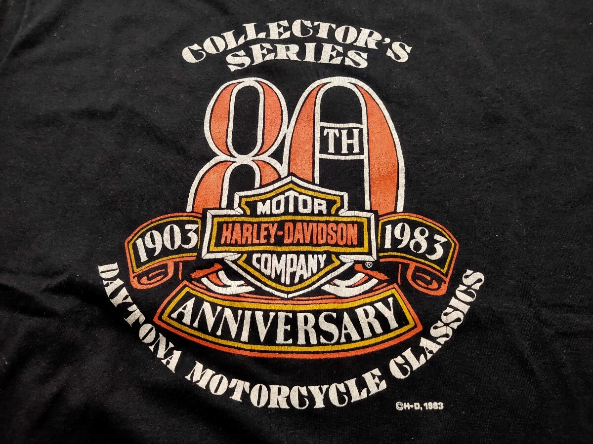 > 美品/80s/ハーレー80周年Tシャツ/Lサイズ/黒/ブラック/ROBISON/ロビソン/デイトナ/バックプリント/ハーレーダビッドソン/USA製/ビンテージ