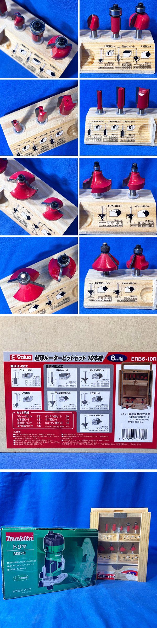- 美品!! マキタ トリマ & 超硬ルータービットセット10本組 6mm軸 ERB6-10R 100V トリマー M373 面取り・溝切り・ホゾ穴 ◇YJ-0108