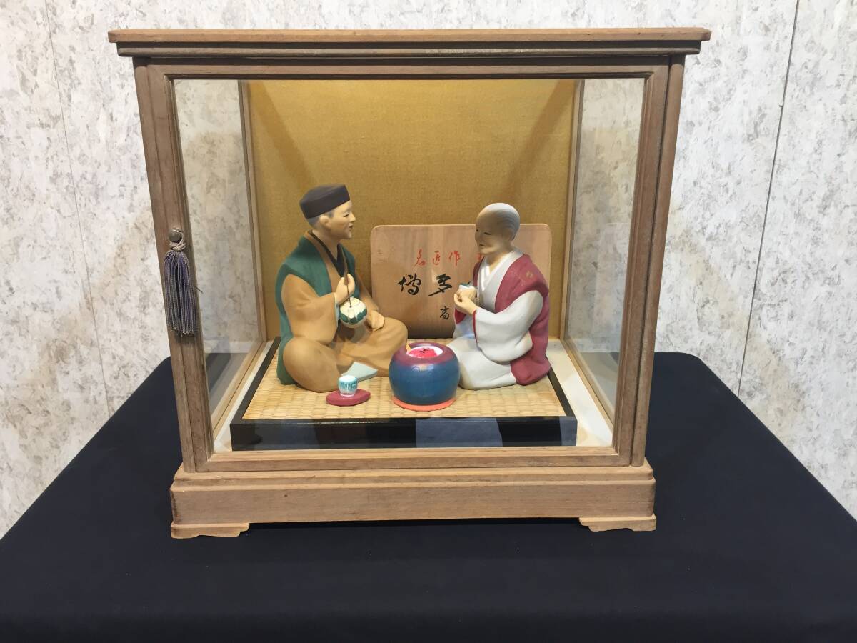 > 『 博多人形 』肥住雅峰作 高砂 熊本水前寺公園茶室 古今集伝授之間 陶器製 硝子ケース付き 雑貨 アンティーク ディスプレイ ★古時家★