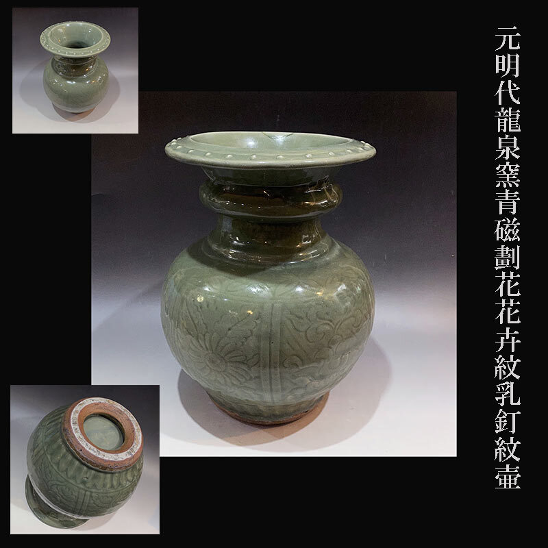 - 元明代龍泉窯青磁劃花花卉紋乳釘紋壷収集家依頼品