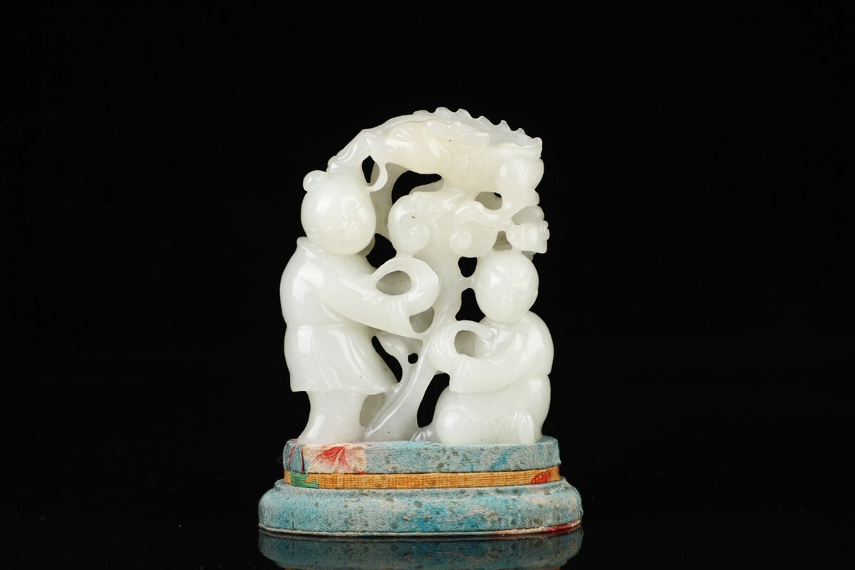 - 「清時代 和田玉 白玉彫り 祥龍童子擺件」極細工 擺件 中国古賞物 古美術 旧蔵出