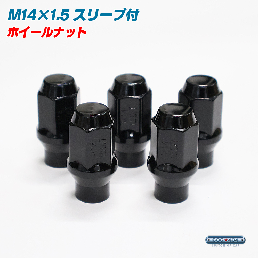 > M14×1.5 スリーブ付 ホイール ナット スチール製 袋タイプ ブラック 5個 トヨタ 250/300系ランクル ジープ ラングラーJL 等