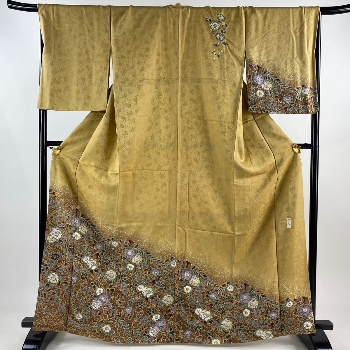 > 訪問着 身丈165.5cm 裄丈69cm L 袷 落款 辻が花柄 金彩 染め分け 黄土色 正絹 名品 【中古】