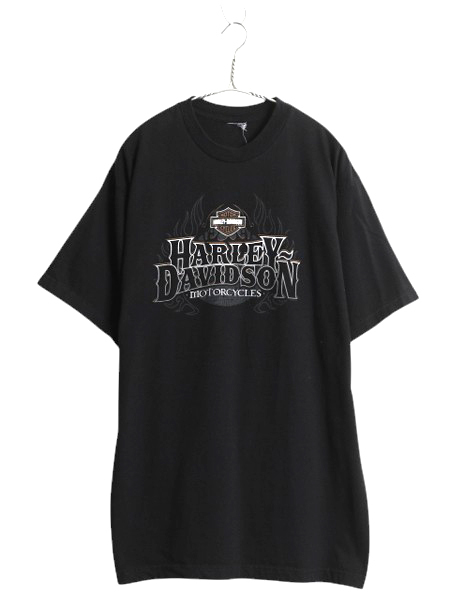 > 00s ハーレー ダビットソン 両面 プリント Tシャツ メンズ XL 程/ オールド バイク トライバル ファイヤー ヘビーウェイト 大きいサイズ 黒