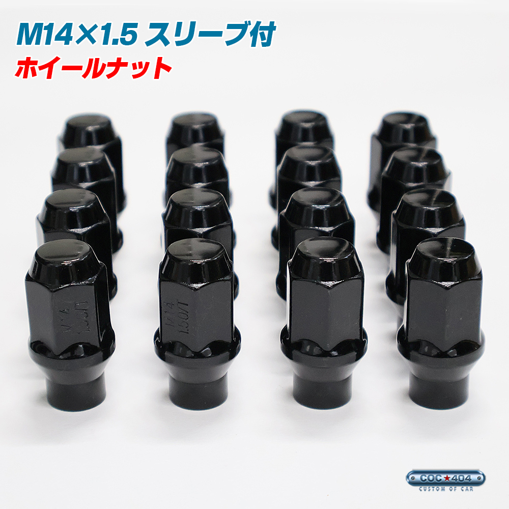 > M14×1.5 スリーブ付 ホイール ナット スチール製 袋タイプ ブラック 16個 トヨタ 250/300系ランクル ジープ ラングラーJL 等