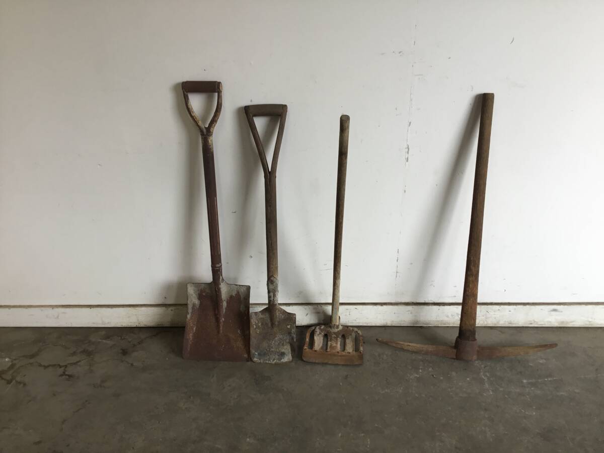 > △ y 岐阜発/ スコップ/ ジョョレン/ ツルハシ/ セット/ 角スコップ大 小/ 手道具/ 農作業/ 土木/ 建築/ 現状品/ R7.7/15 △