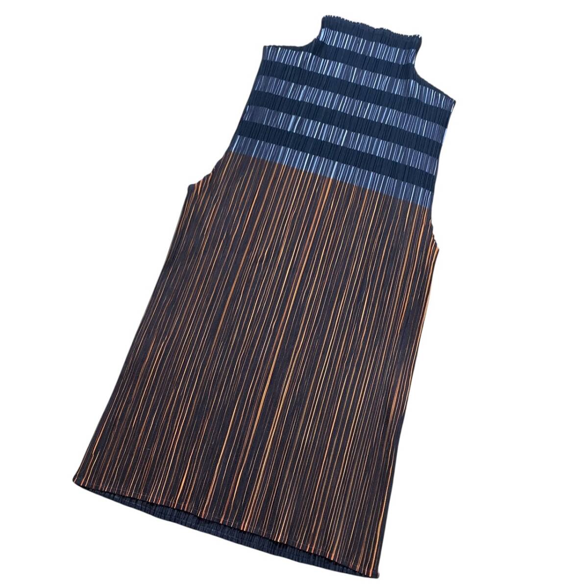 > イッセイミヤケ プリーツプリーズ ハイネック カットソー ブラック×オレンジ系 サイズ3 PP64-JK533
