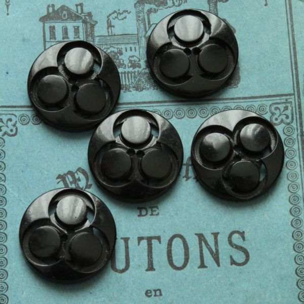 - 即決 プラスチックボタン 5個 φ18mm ブラック 樹脂ボタン 透かし フランス輸入 ヴィンテージ