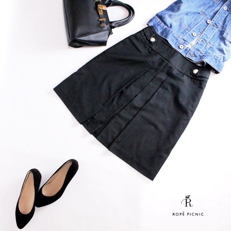 - 美品 ロペ ピクニック ROPE' PICNIC ■ 春 夏 エンブレム ロゴボタン シンプル Aライン フレアスカート M 9号 ブラック 黒 無地