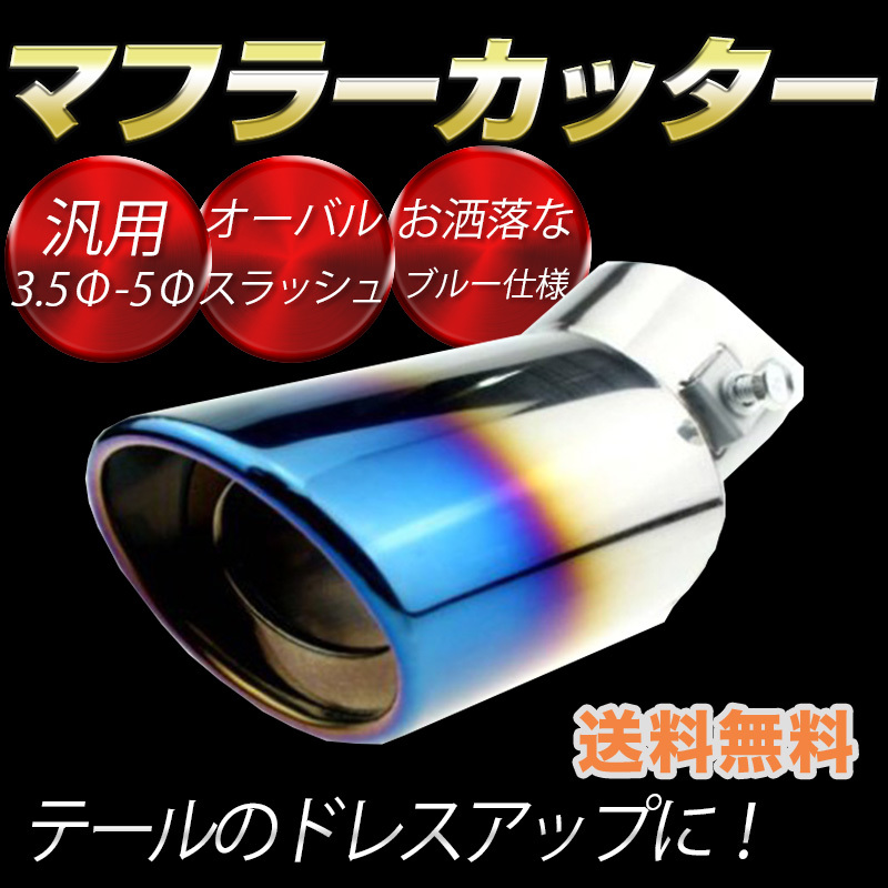 - マフラーカッター オーバル スラッシュカット ブルー 汎用 下向 ステンレス 車 カー用品 カスタム ドレスアップ パーツ マフラー テール